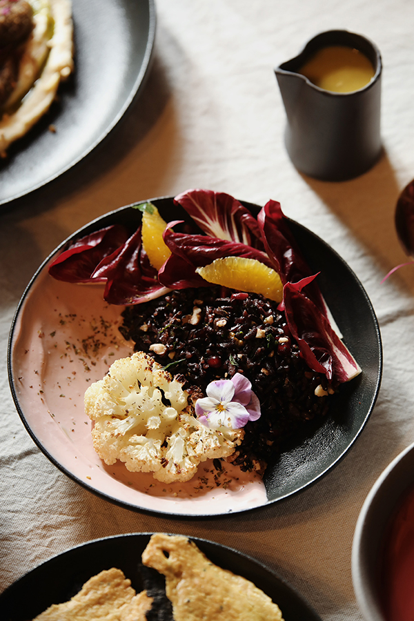 Je sélectionne des produits de saison, majoritairement biologiques et issus de producteurs locaux, avec exigence et conscience. Aucun produit d’origine animale n’entre dans ma cuisine, laissant toute sa richesse et sa créativité au végétal.